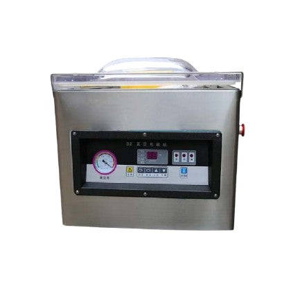 Compact commercial vacuum packaging machine for efficient, airtight food sealing to extend shelf life. Built with food-grade stainless steel and a powerful vacuum pump, it provides reliable performance—ideal for restaurants, cafés, and small food processing operations.