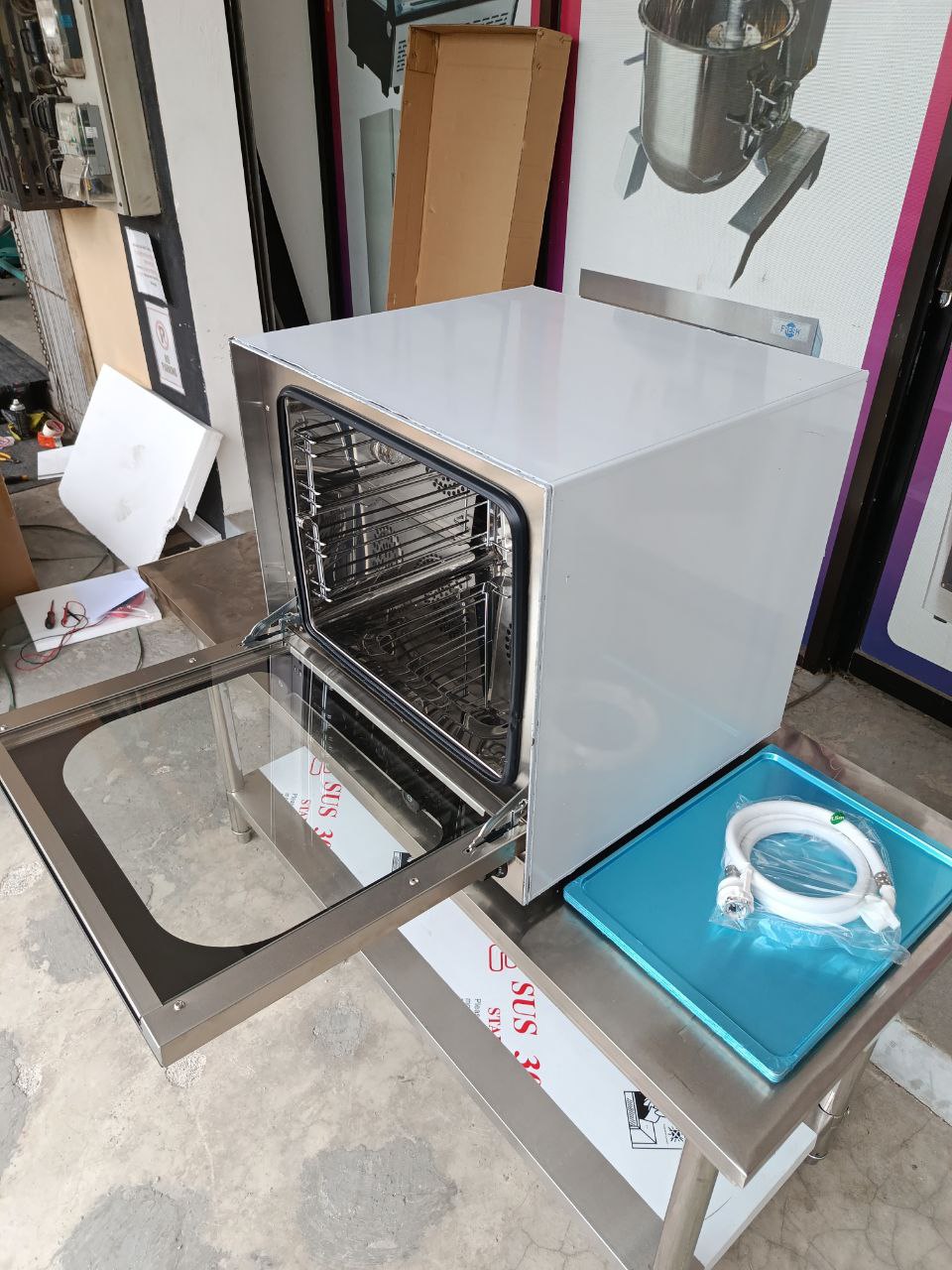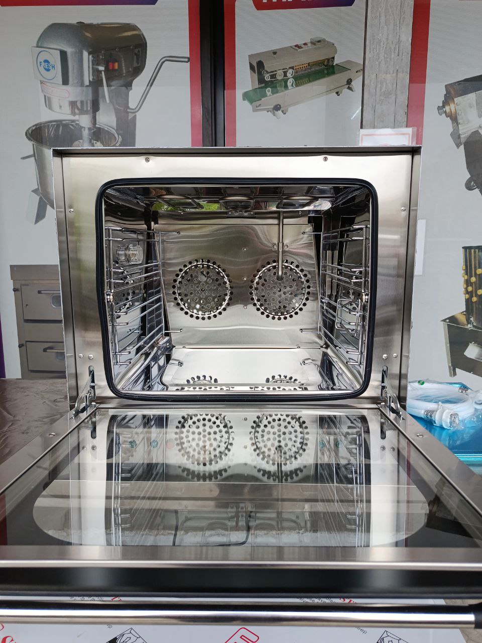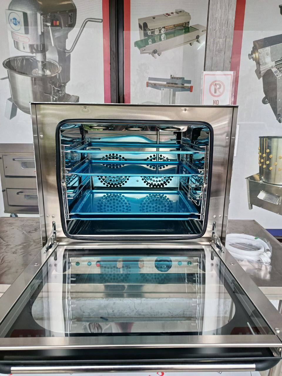 Professional-grade convection oven equipped with integrated steam function for versatile baking and cooking. Built with durable stainless steel and precise temperature control, it ensures even heat distribution and moist, consistent results—ideal for bakeries, cafés, and commercial kitchens.